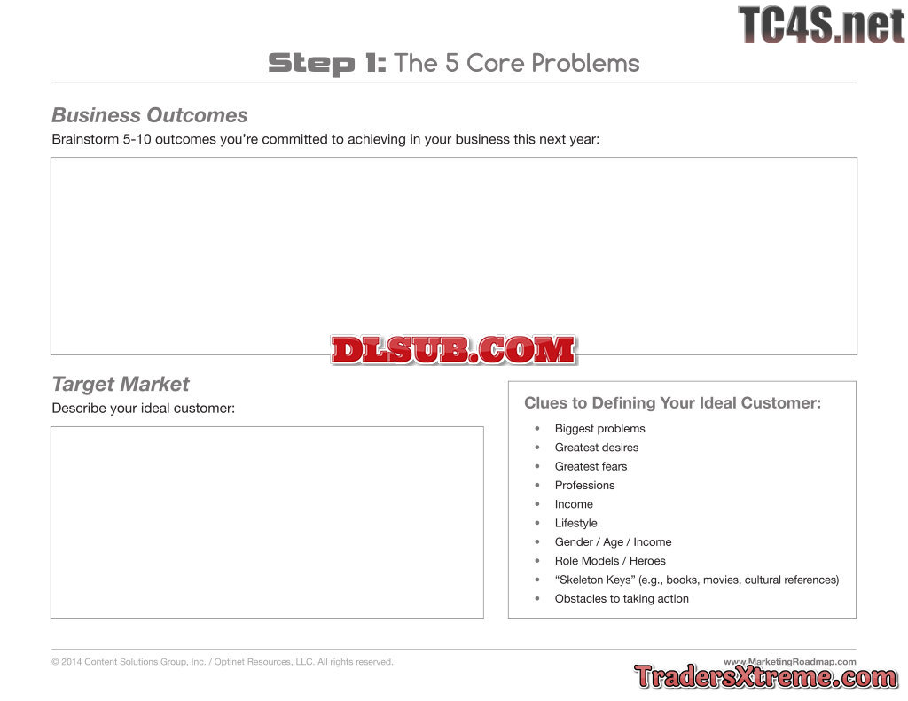 Marketing Roadmap Card 1 5 Core Problems Form - JPG Image File