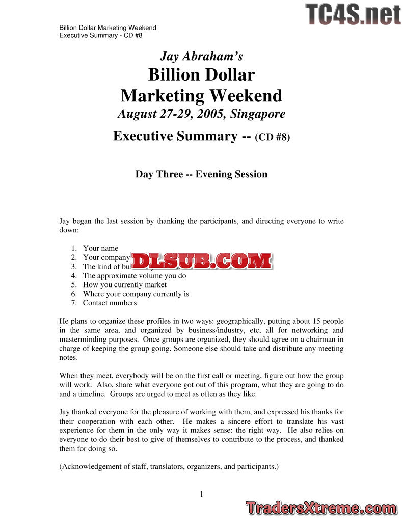 store.c4sale.net - /estore/trading-course-images/pdc4s-vault/j/jay-abraham/jay-abraham-billion-dollar-marketing-summit-summary/