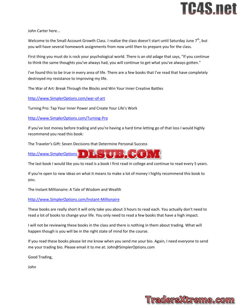 John Carter Simpleroptions Small Account Growth Class Strategies Course Dvd Usd 497 Usd 88